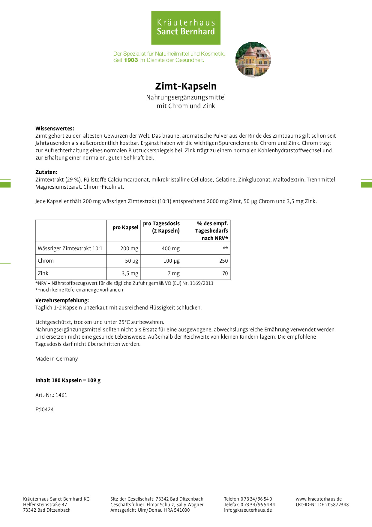- Sanct Bernhard là một trong những hãng sản xuất dược mỹ phẩm hàng đầu tại Đức và Châu Âu. Thành lập từ năm 1903 với hơn 117 năm đồng hành phát triển cùng sức khỏe con người. Là một trong những thương hiệu lâu đời và có chất lượng sản phẩm tốt bậc nhất Châu Âu. Được phân phối tại hơn 100 Quốc gia trên thế giới trong đó có hơn 30 nước Châu Âu. Thanh Trang tự hào là đơn vị nhập khẩu và phân phối độc quyền các sản phẩm dược mỹ phẩm từ hãng dược phẩm Sanct Bernhard của CHLB Đức tại Việt Nam.